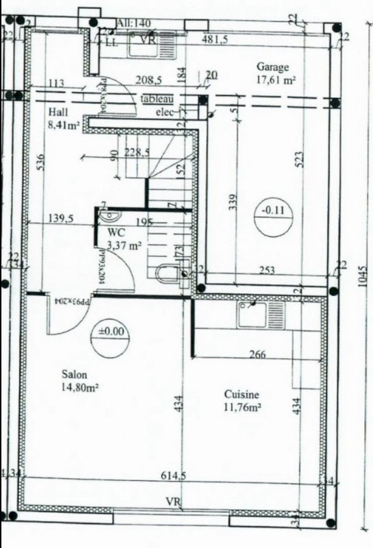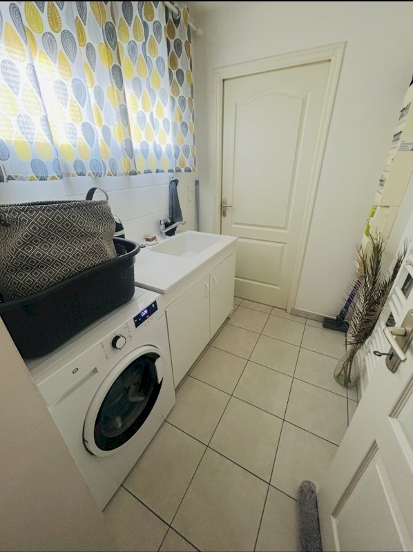 • Au RDC, entrée, pièce de vie avec cuisine ouverte récente aménagée et équipée, grand WC avec lave mains, espace lingerie avec meuble évier et garage.