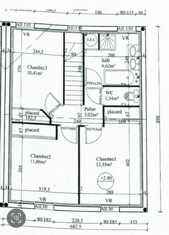 Chauffage au sol au RDC et convecteurs électriques à l’étage.