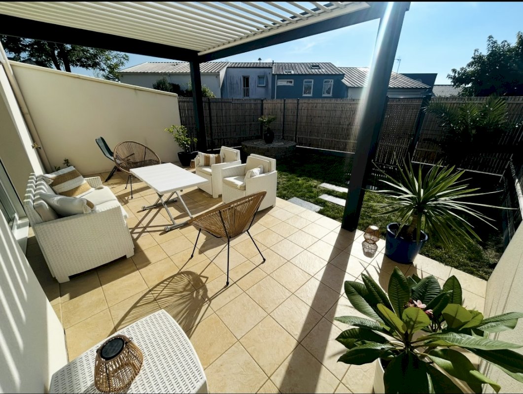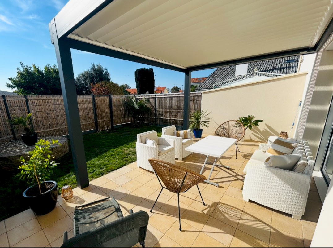 Extérieur d’environ 50m² exposé SSO : terrasse carrelée avec pergola bioclimatique télécommandée récente, puits non raccordé avec pompe existante sur jardin arboré et clôturé avec ouverture sur parking et passage privé en indivision de 200m² dont 2 places de stationnement privatif.