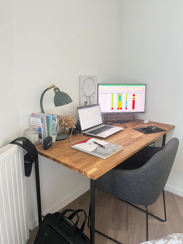 Au sein d’une résidence de 2021, l’appartement s’ouvre sur une belle entrée qui dessert une salle de bain avec douche et WC, équipée d’un chauffe-serviettes. La pièce de vie se compose d’un coin salon très lumineux, grâce à une grande porte-fenêtre qui donne sur un balcon de 8 m² exposé plein sud. Dans le prolongement, une cuisine aménagée avec de nombreux rangements et un plan de travail spacieux qui permet de s’attabler à quatre personnes. La chambre de 12 m² offre un espace dressing et un coin bureau, idéal pour le télétravail ou les études. La porte-fenêtre apporte une belle luminosité à la pièce, et s’ouvre sur un petit balcon.