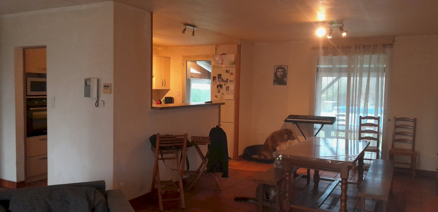 Cette maison comprend 4 chambres dont une de 18 m², buanderie, salle de bain, wc, grande pièce de vie, cheminée ouverte, cuisine ouverte, véranda d'été, piscine creusé 4x9m, garage.