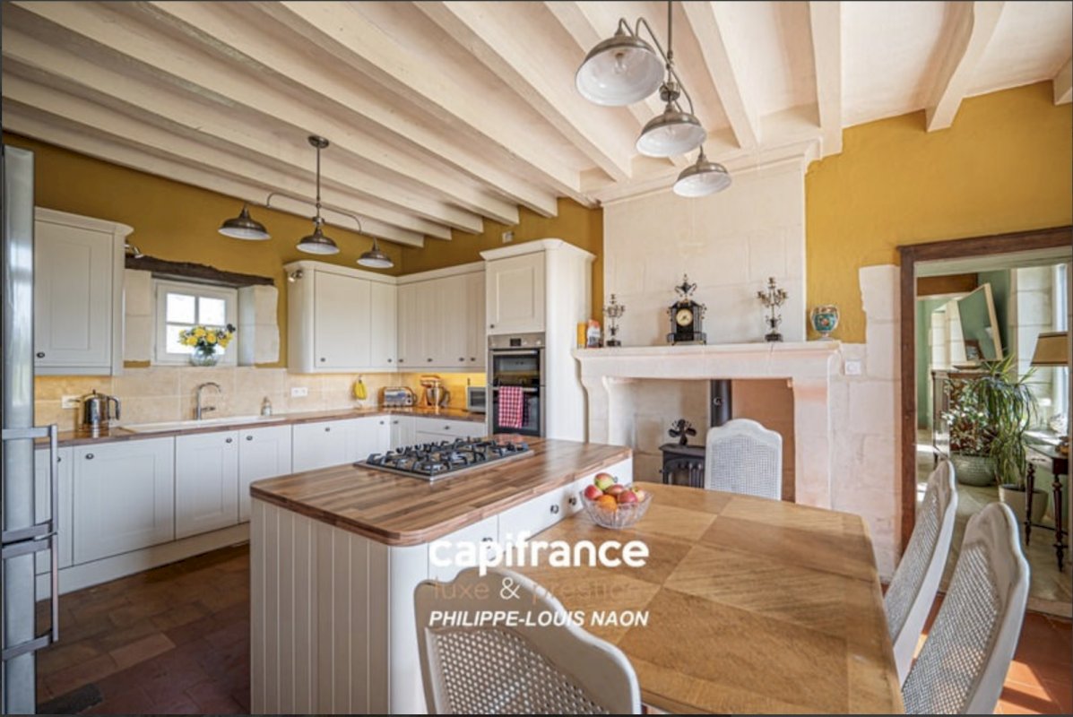 En entrant dans la maison, vous serez accueilli par un hall d'entrée accueillant avec un vestiaire. Le vaste espace de vie, qui s'étend sur plus de 100 mètres carrés, est un délicieux mélange de confort et d'élégance. Un salon confortable avec un poêle à bois, une salle à manger spacieuse et une superbe cuisine de style campagnard créent une atmosphère invitante pour recevoir et se détendre. La cuisine, équipée d'une plaque de cuisson au gaz, de pierres de tuffeau et de carreaux de terre cuite, est un véritable havre de paix culinaire. Une buanderie séparée ajoute à l'aspect pratique de cet espace.