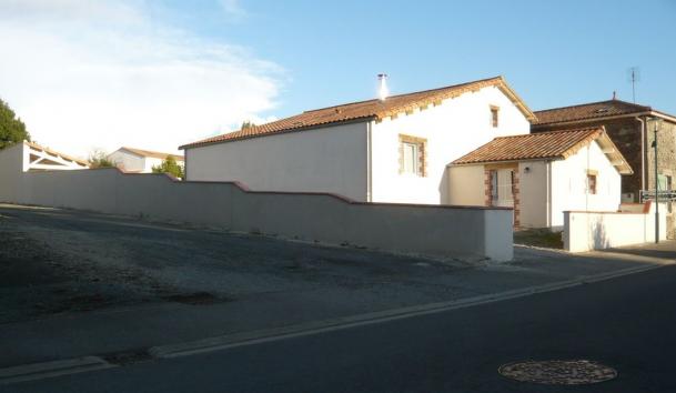 Mur crépi à la chaux avec chaperons de mur en argile sur 45 m.