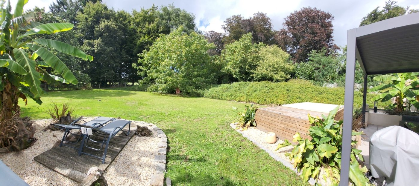 Sur terrain clos et verdoyant de 1900m² avec terrain de pétanque.