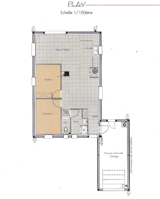 Elle se compose d’une pièce de vie lumineuse de 45 m² exposée sud avec salon, séjour et cuisine ouverte.