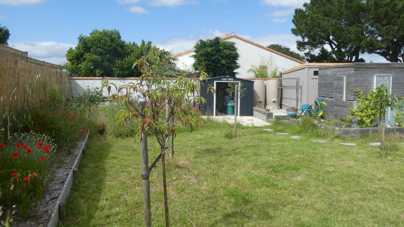 Le jardin est équipé de 2 cabanons pour divers rangements - garage à vélos, et d’une sympathique cabine de douche pour les retours de plage.