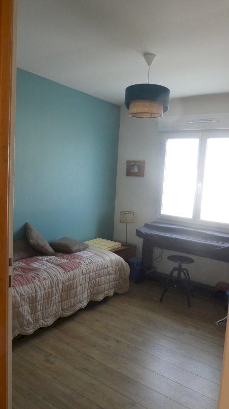 Un couloir dessert 3 chambres équipées de placards, une salle d’eau claire et des toilettes séparées.
