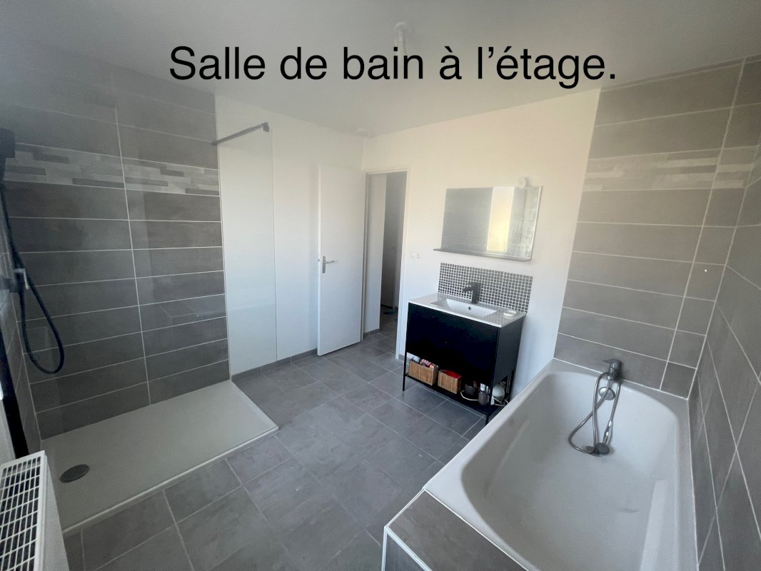 • A l'étage, 3 grandes chambres. Une salle de bain avec douche plus baignoire plus meuble toilette avec vasque. Plus un autre wc.