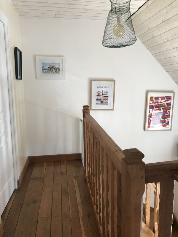 - Étage : 2 chambres, une salle de bain avec douche et baignoire à l’ancienne sur pieds, WC à chaque étage.