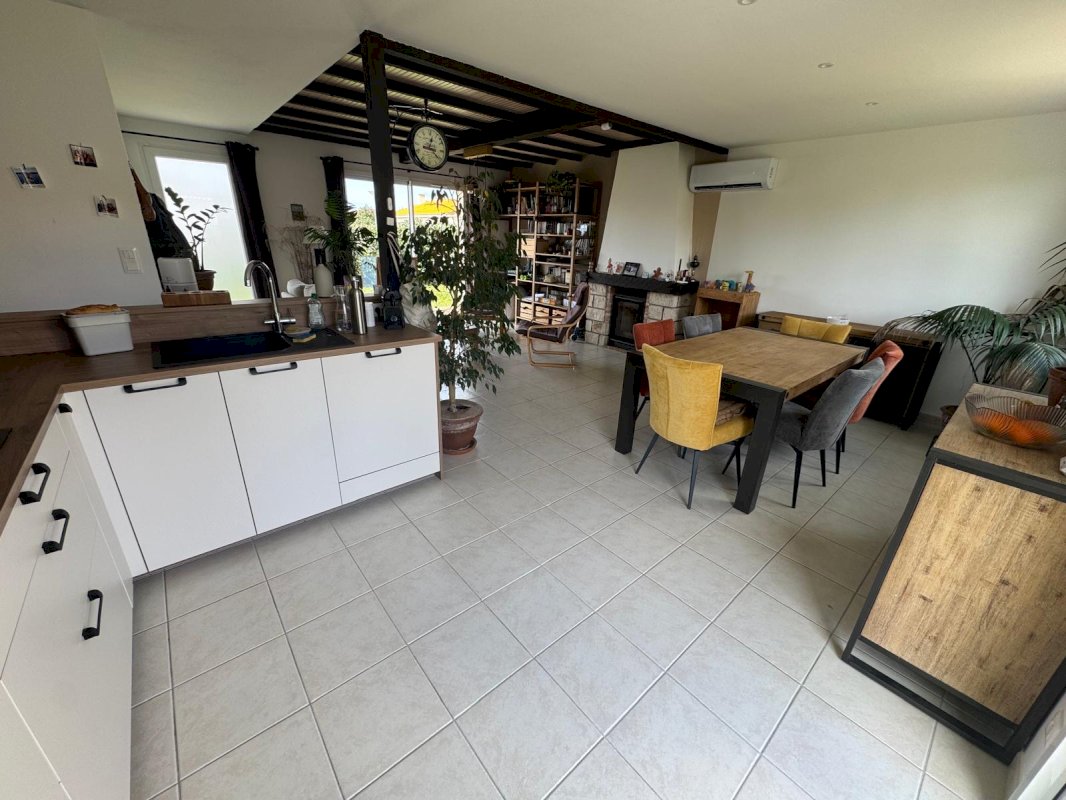 D’une pièce de vie lumineuse et traversante avec une cuisine ouverte et totalement équipée (neuve de juin 2025) ainsi qu’un poêle à bois (2015).