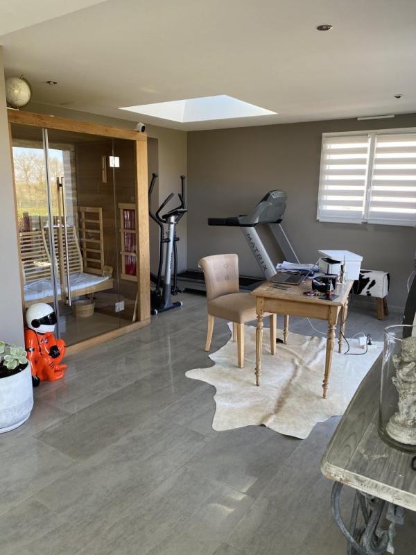 Un garage avec avec trois porte d'entrée, plus une petite porte ,environ 111 m², un chauffage géothermie qui vous coûte que 800 € par an pour chauffer toute la maison à une température de 21°,