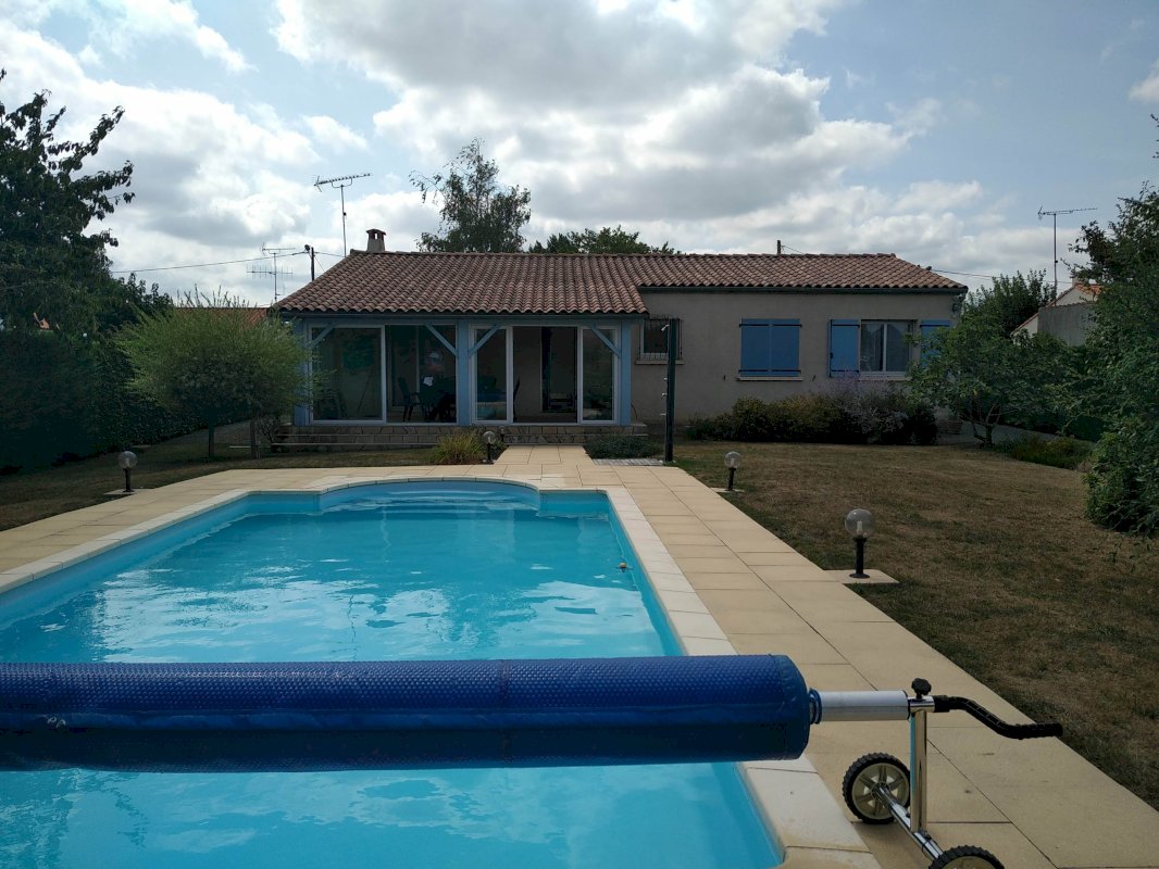 Cette maison comprend 4 chambres dont une de 18 m², buanderie, salle de bain, wc, grande pièce de vie, cheminée ouverte, cuisine ouverte, véranda d'été, piscine creusé 4x9m, garage.