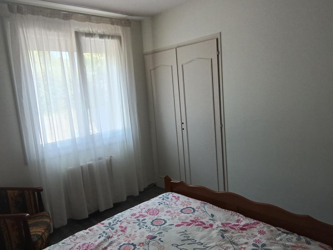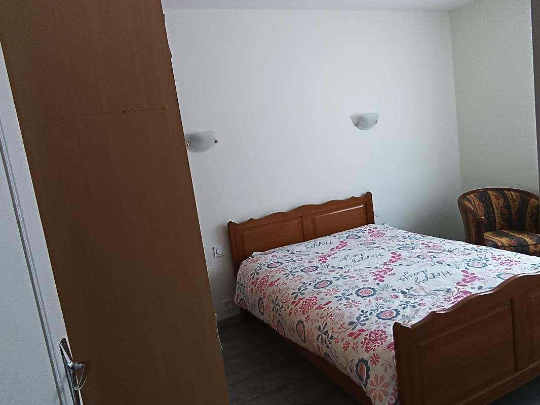 Chambre de 12 m² avec Fenêtre en PVC neuf avec un côté oscillo-basculant un placard, sol en Parquets stratifiés. Chauffage avec radiateur à fluide caloporteur.