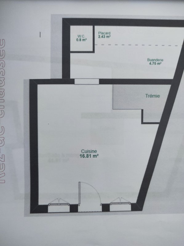 RDC total environ 25m² : cuisine aménagée et équipée,wc, dressing / buandrie.