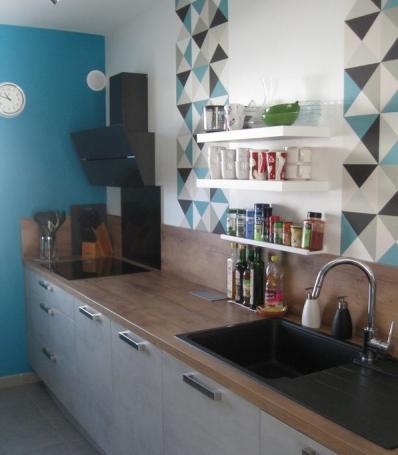 - cuisine aménagée en 2018 et équipée (Bosch) incluant : plaque induction, hotte, four, micro-onde, LV.