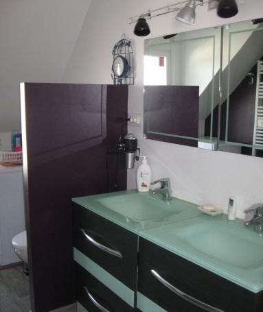 - salle de bain de 11 m² avec double vasque, douche et WC.