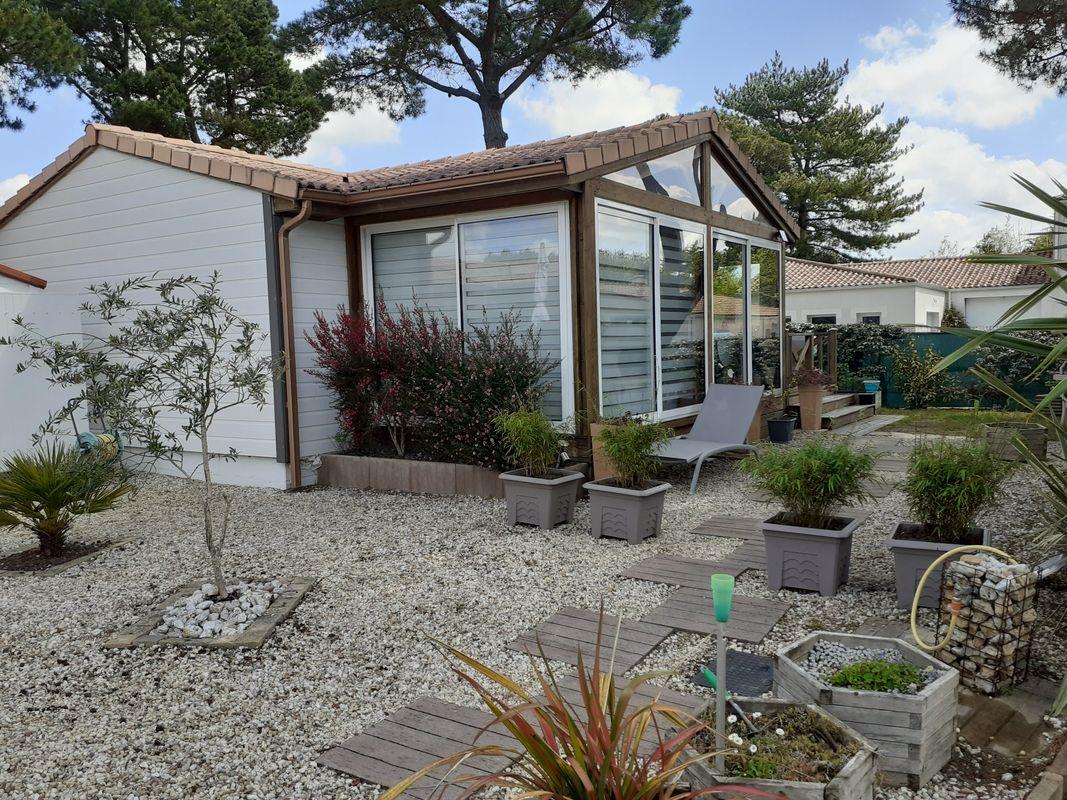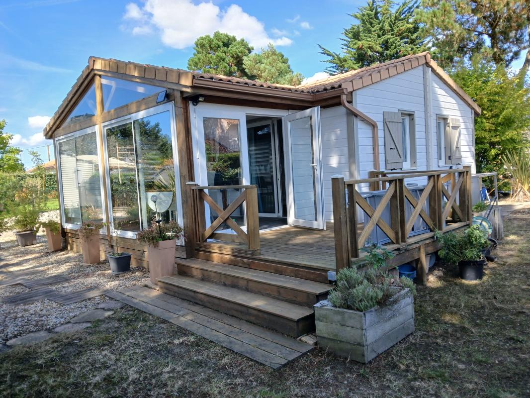 Chalet bois vue mer, 35m² plus 15m² de veranda, tout équipé cuisine aménagée construction 2010 toiture tuiles climatisation reversible, cabanon 5m² dans camping résidentielle calme sur emplacement privé de 300m².