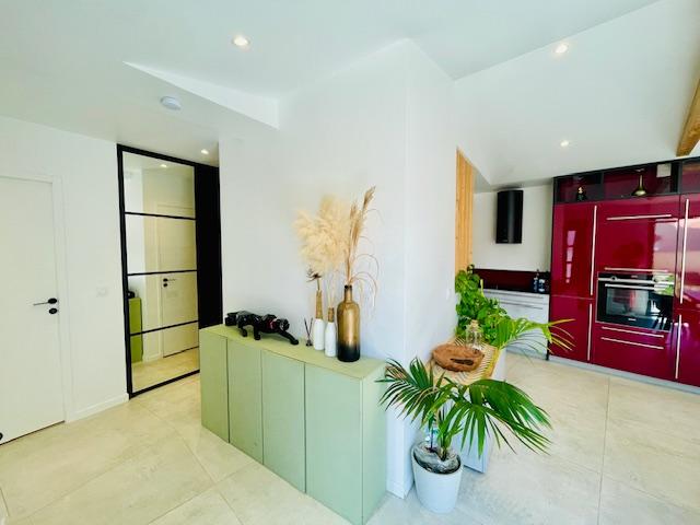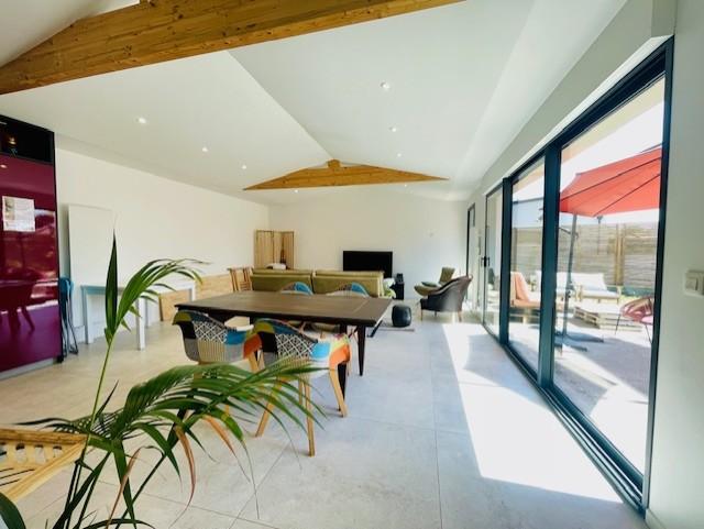 - Le salon lumineux, agrémenté d'une grande baie vitrée, baigne l'espace de lumière naturelle, créant une atmosphère chaleureuse et accueillante.
