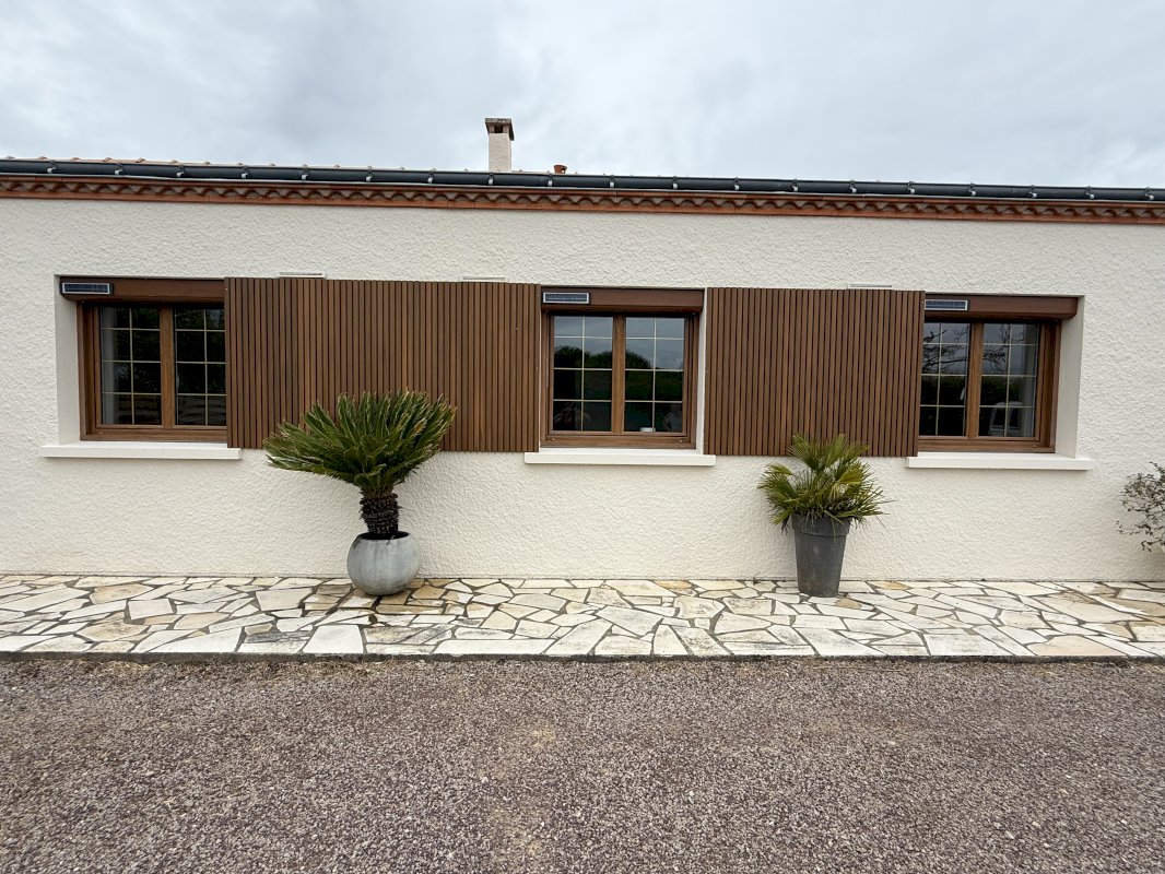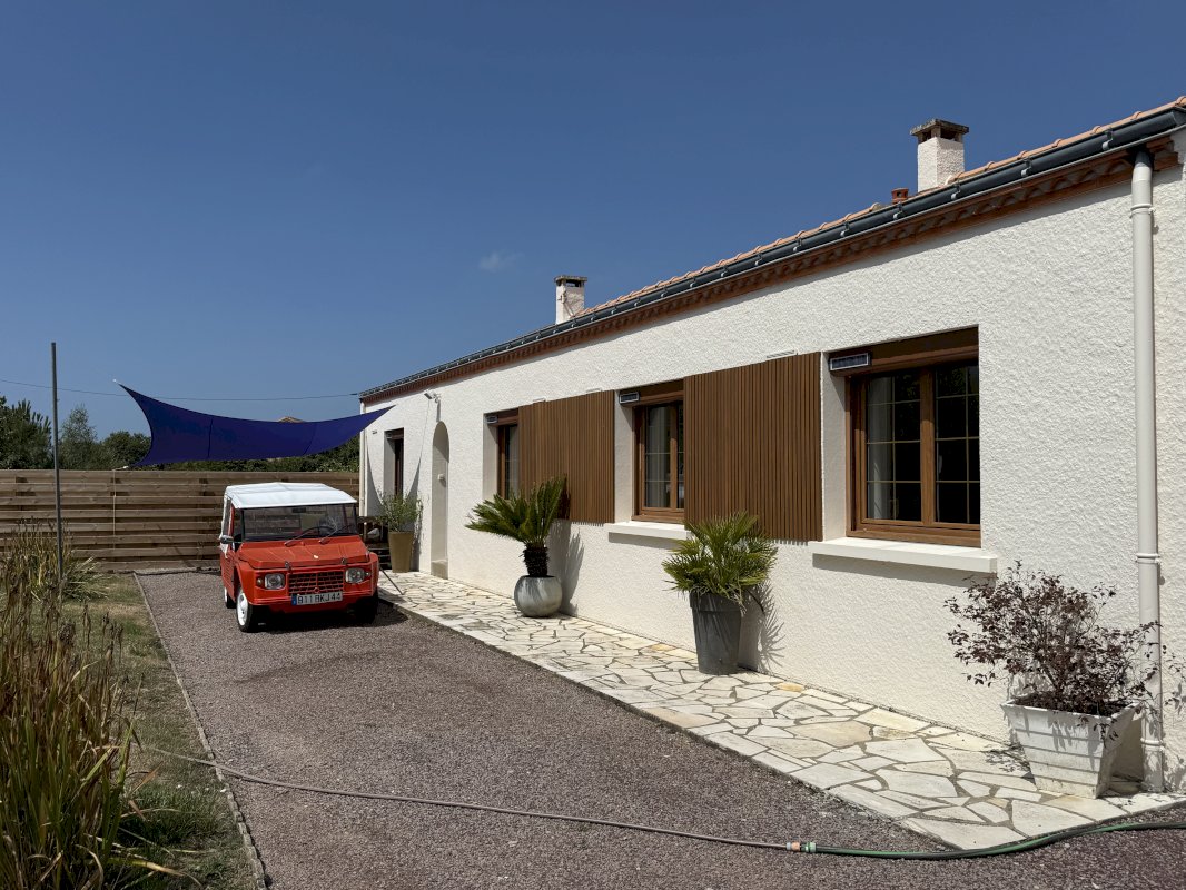 Maison, fraîchement rénovée, composée d'un vaste séjour de 32 m², d'une cuisine séparée neuve de 14 m², d'une arrière-cuisine, de trois belles chambres, grande salle d'eau, et WC, séparées, une autre pièce, pouvant servir de chambre, de bureau, d'atelier avec une porte donnant directement sur l'extérieur et permettant éventuellement de recevoir du public sans passer par la maison.