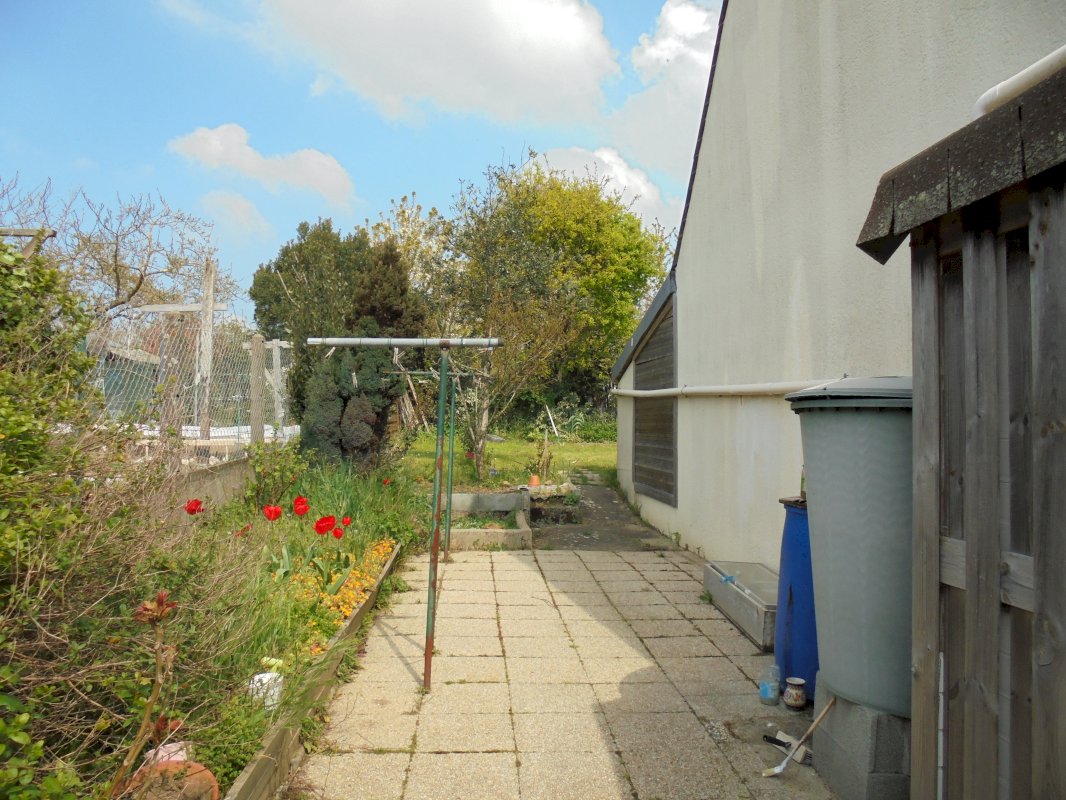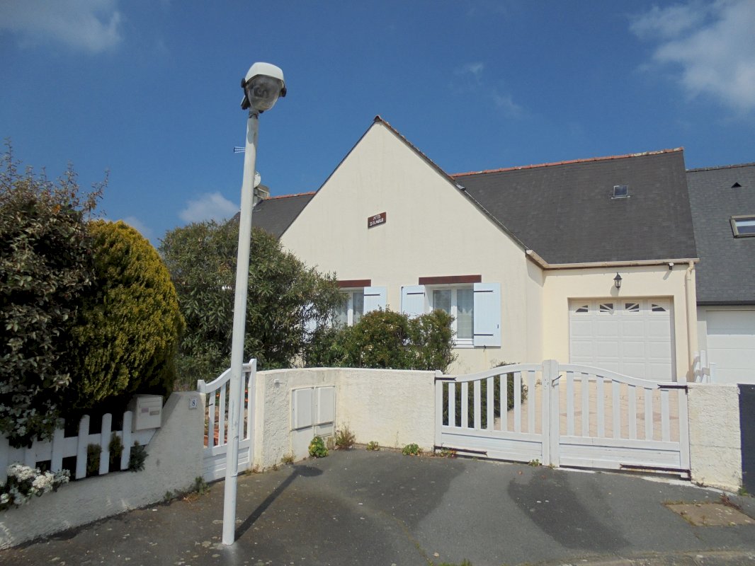 Maison individuelle, mitoyenne par le garage, avec 3 chambres, toilettes, wc, salon, cuisine, verranda, grand garage, au rez de chaussée, et 2 chambres, toilettes, wc et plus a l'étage. La surface du terrain est de 700m², une chape cimentée de 30m² (pour stocker bateau ou camping car) fermée avec un portaille 2 places de stationnement, le tout dans un quartier calme avec peu de passage.