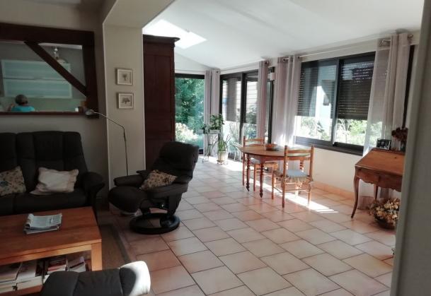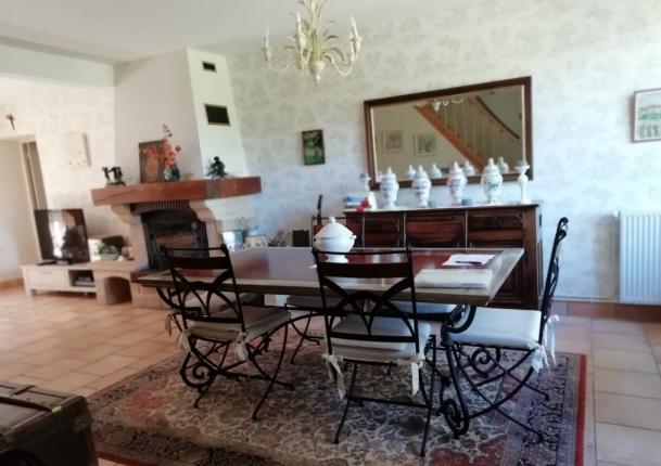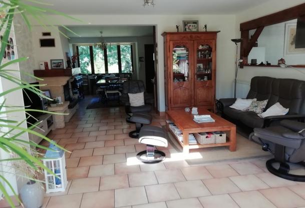 - grand séjour/salon de 58 m² une cheminée insert avec de grandes baies vitrées,