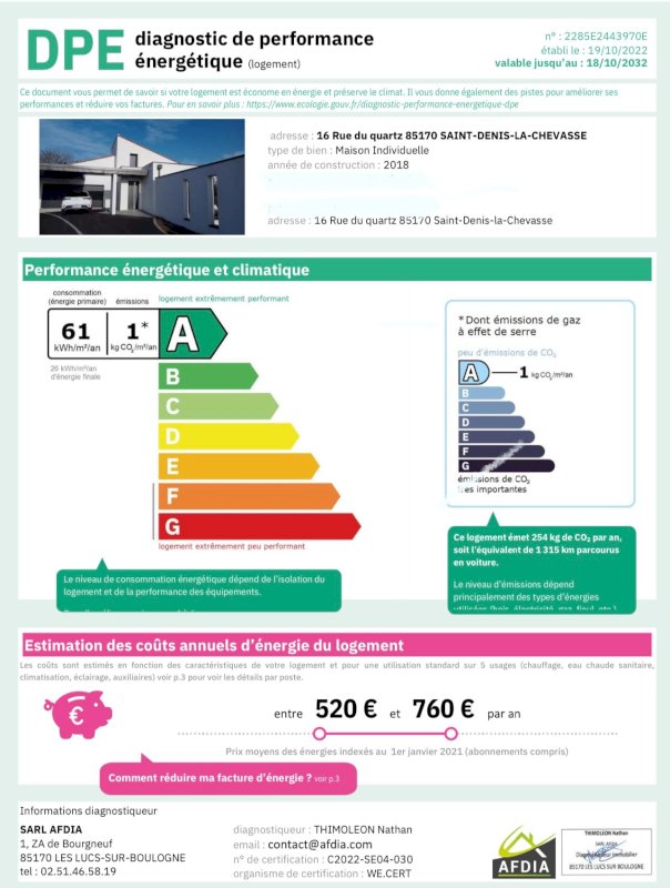 Date de réalisation du diagnostic énergétique : 19/10/2022