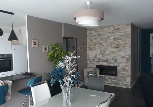 - un séjour de 20,27 m² avec cheminée éthanol – radiateur électrique – baie coulissante double vitrage,