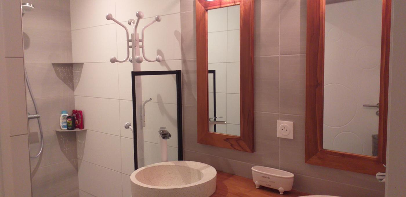 - Salle d'eau avec 1 vasque, WC, et douche à l’italienne