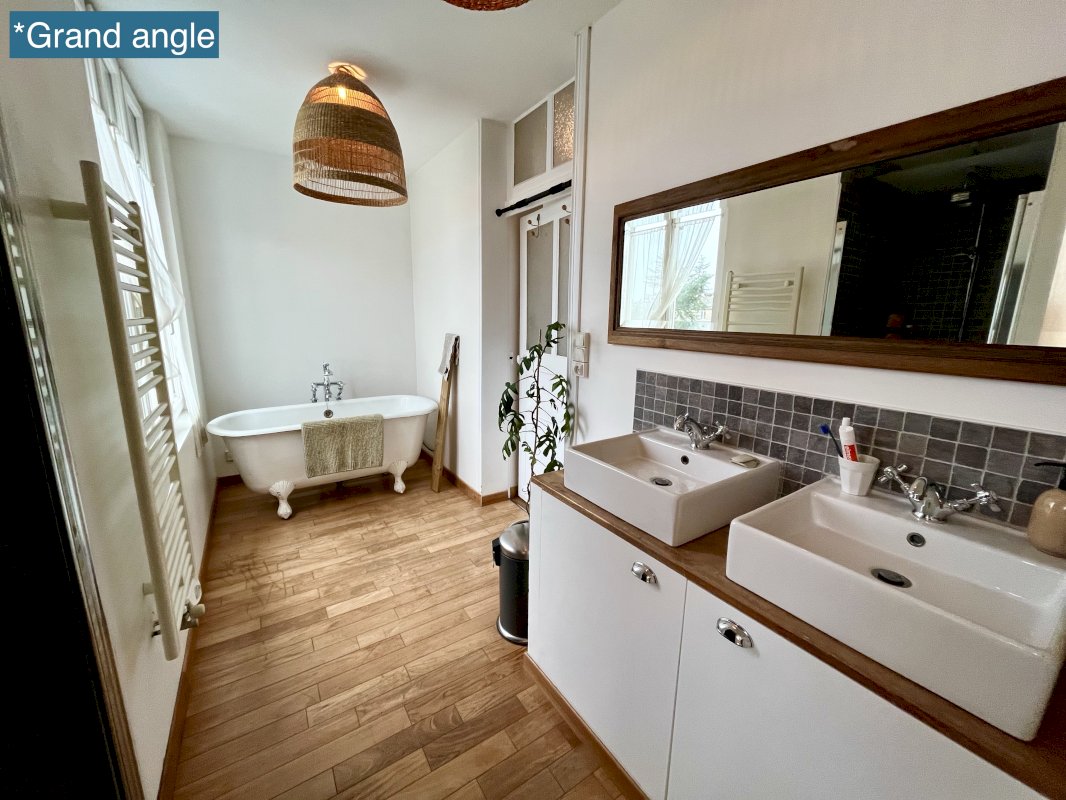 - Grande salle de bain exposée sud avec baignoire, douche et toilettes