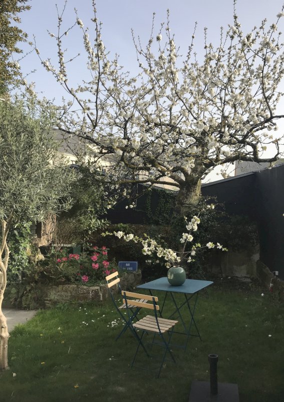 Vous y trouverez un magnifique cerisier, ainsi qu’un atelier à aménager selon vos projets.