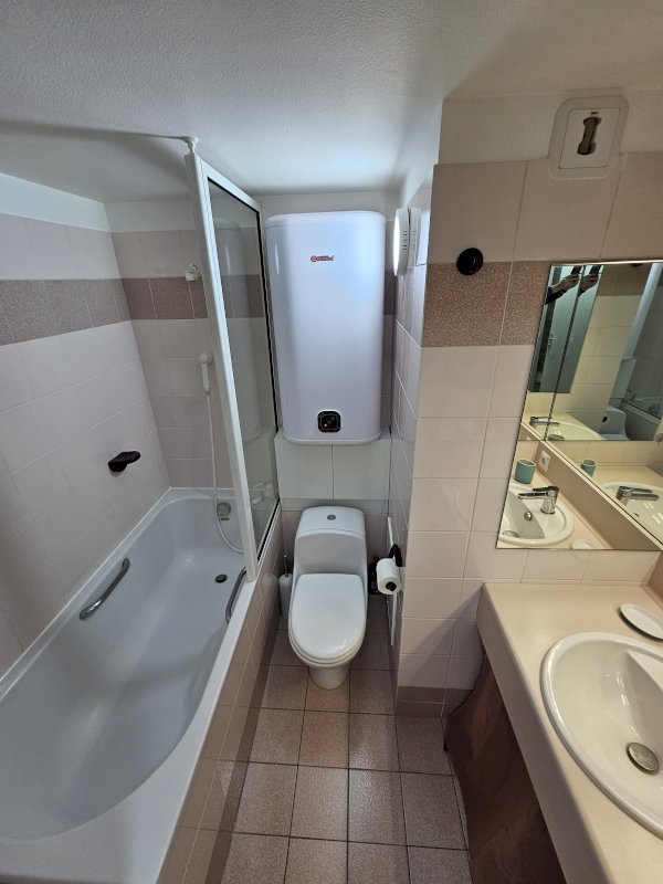 Il se compose d’une entrée avec placard, d’une pièce de vie avec coin cuisine aménagé, ainsi que d’une salle de bain avec WC. Le bien dispose également d’une cave en sous-sol et d’une place de parking privative, des atouts appréciables au sein de la résidence.