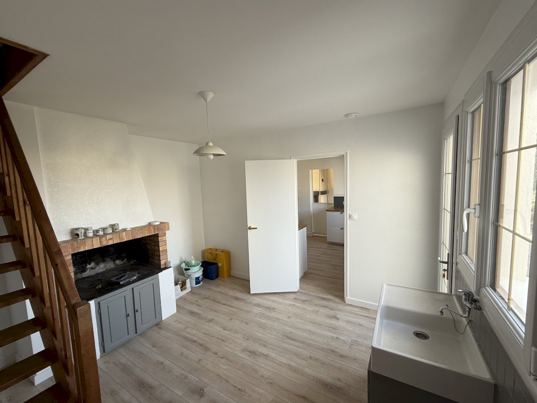 Maison, fraîchement rénovée, composée d'un vaste séjour de 32 m², d'une cuisine séparée neuve de 14 m², d'une arrière-cuisine, de trois belles chambres, grande salle d'eau, et WC, séparées, une autre pièce, pouvant servir de chambre, de bureau, d'atelier avec une porte donnant directement sur l'extérieur et permettant éventuellement de recevoir du public sans passer par la maison.