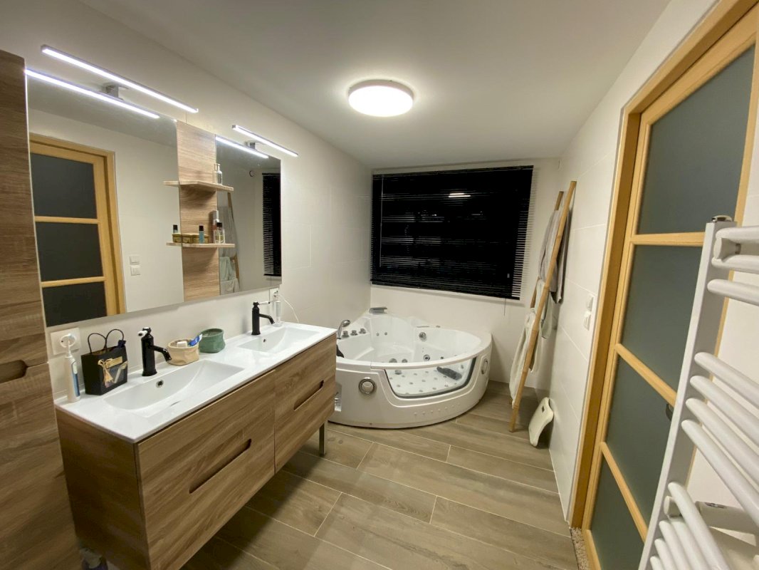 Le chauffage est assuré par une chaudière gaz à condensation neuve, complétée par un poêle à pellets. Les combles, déjà isolés, sont aménageables et permettent la création d’une pièce supplémentaire d’environ 11 m² habitables.