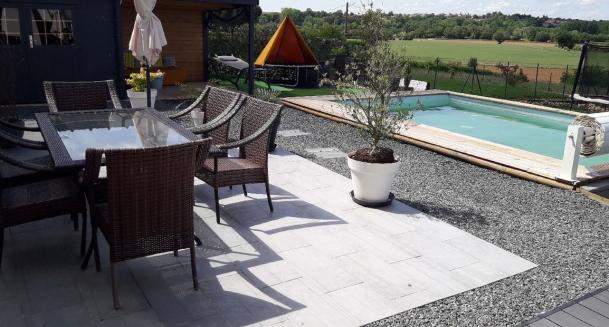 90 m² de terrasse environ dont 40 m² carrelés et 25 m² en lames composites.