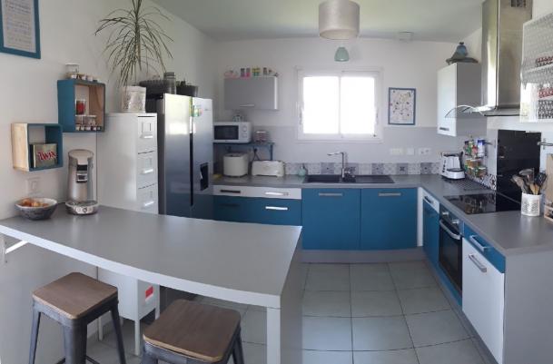 - 1 grande pièce de vie : salon, salle à manger et cuisine ouverte équipée (lave vaisselle XXL, four pyrolyse, plaque induction) avec volets roulants électriques centralisés.