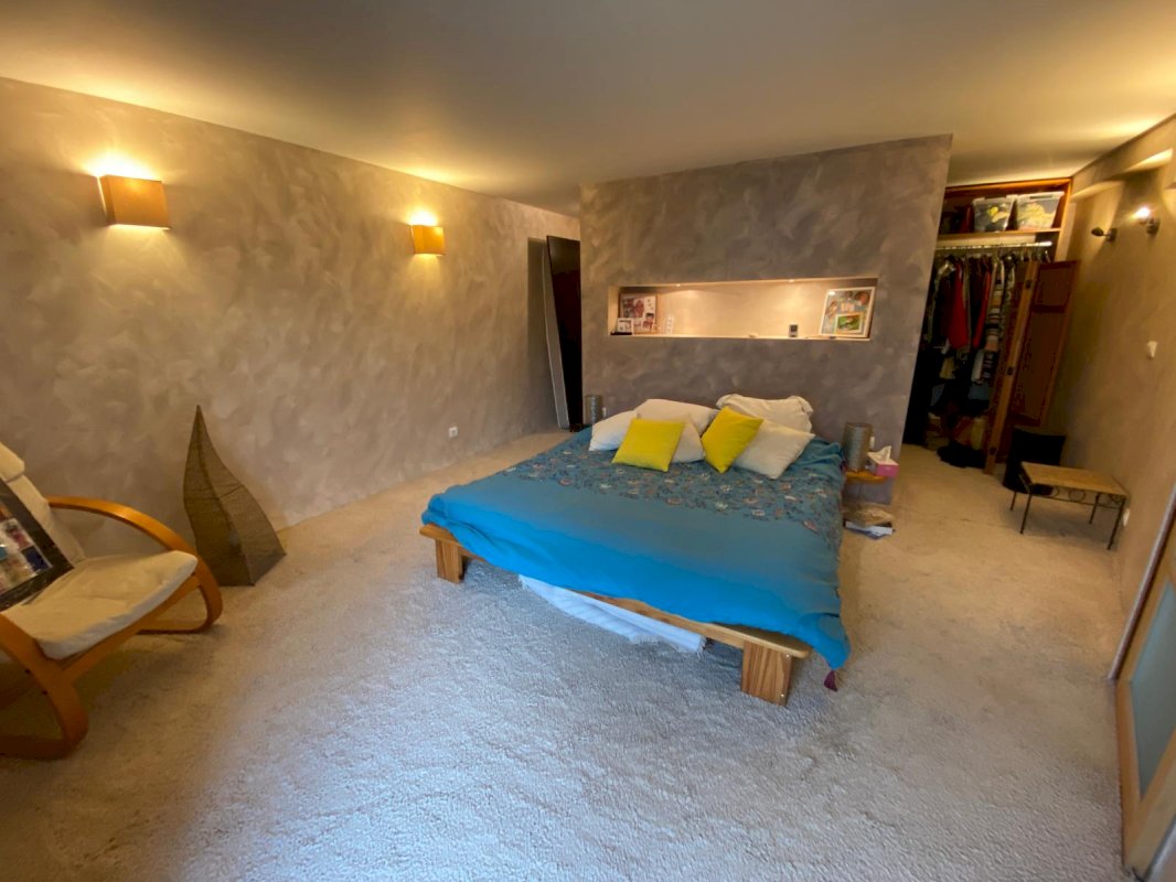 La maison se compose au rez-de-chaussée d’une grande pièce de vie lumineuse de 70 m² et d’une salle d’eau avec WC. En rez-de-jardin, vous trouverez une suite parentale de 34 m² avec salle de bain privative, une chambre, un WC indépendant et un cellier.