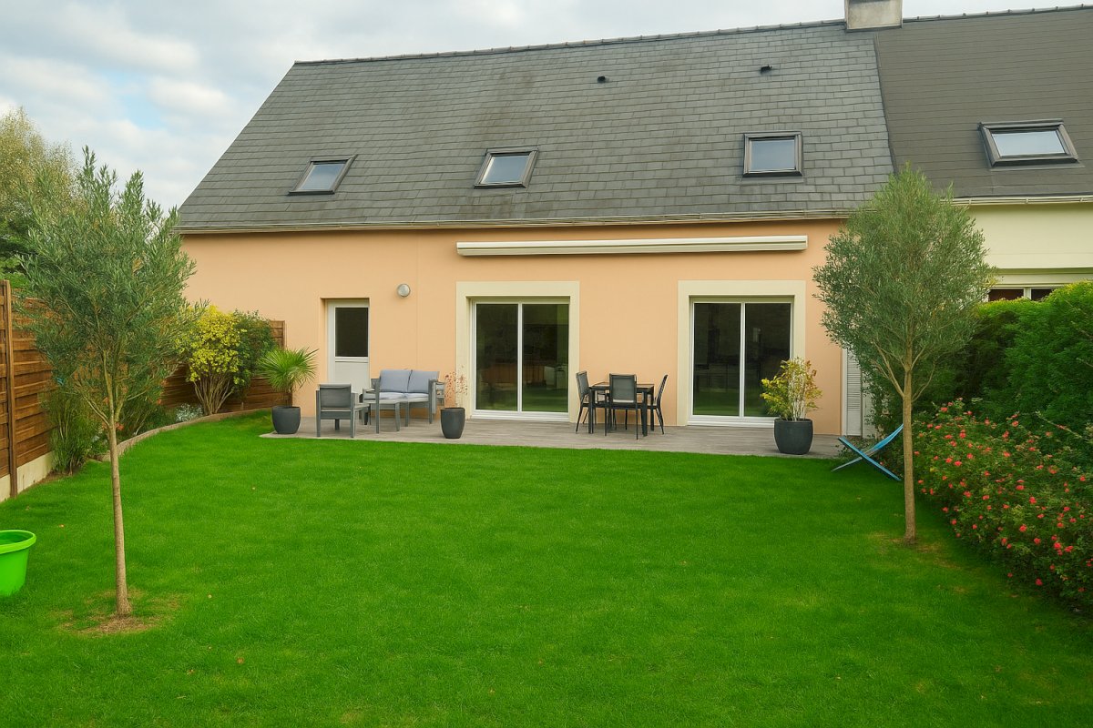 - RDC entièrement carrelé, un garage de 40 m² avec porte de garage motorisée et chaudière à condensation (chauffage et eau chaude), une porte accès arrière jardin.