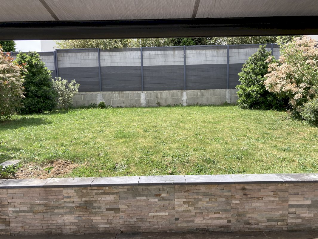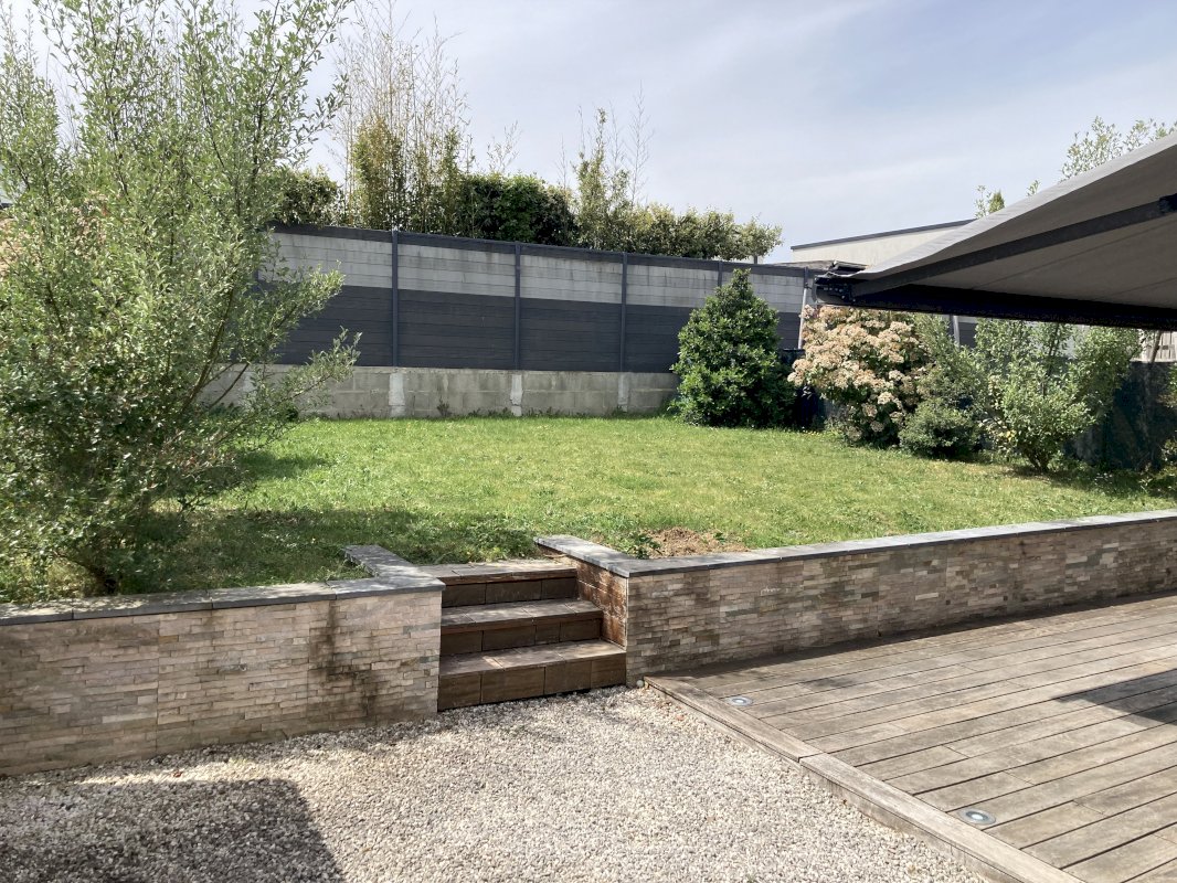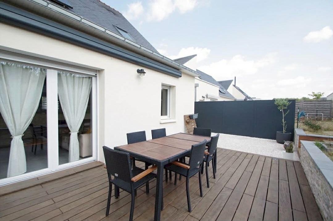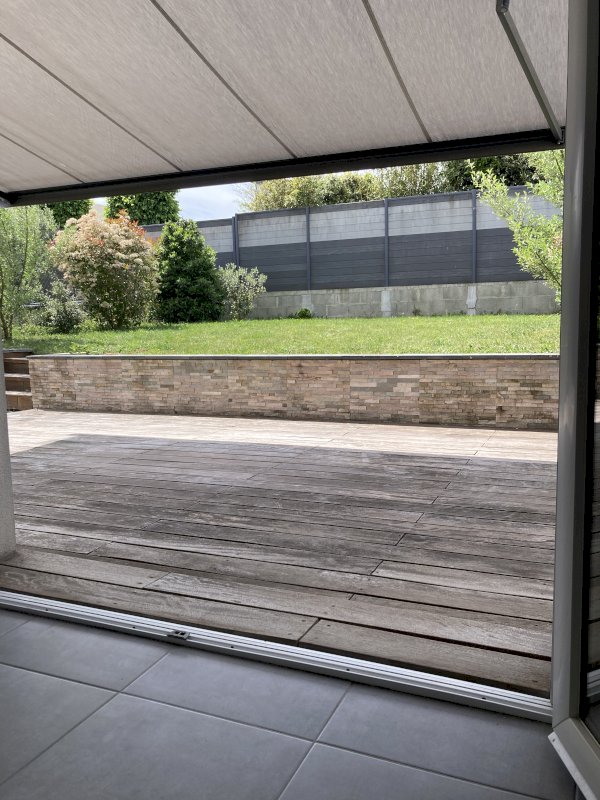 En extérieur, profitez d'une terrasse en bois avec un store automatisé sans vis à vis et d'un espace pelouse.