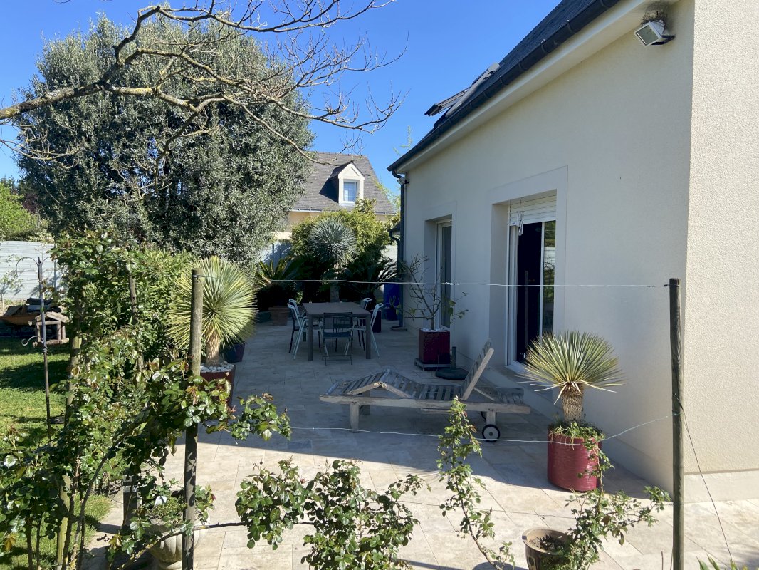 Cette maison très lumineuse propose une grande terrasse carrelée et un jardin arboré clos et paysagé de 638 m².