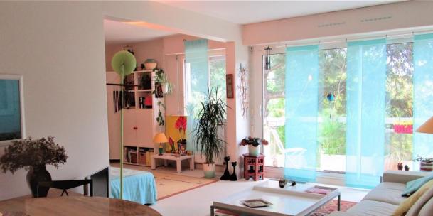 Généreux espaces de vie intérieur et extérieur pour cet appartement de 97 m² + balcons et terrasse, au calme et bien exposé, au coeur d'un magnifique parc privé de 1 ha entièrement clos et sécurisé, avec tennis ; grand espace de jeu pour les enfants et de détente pour tous.