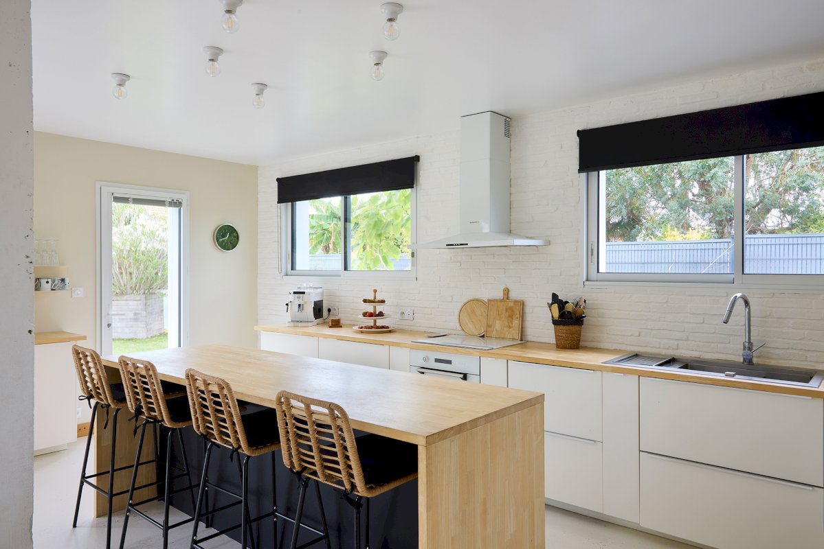 Ancien atelier rénové en 2015, elle offre 230 m² de beaux volumes, lumineux et chaleureux, parfaitement adaptés à une vie de famille.