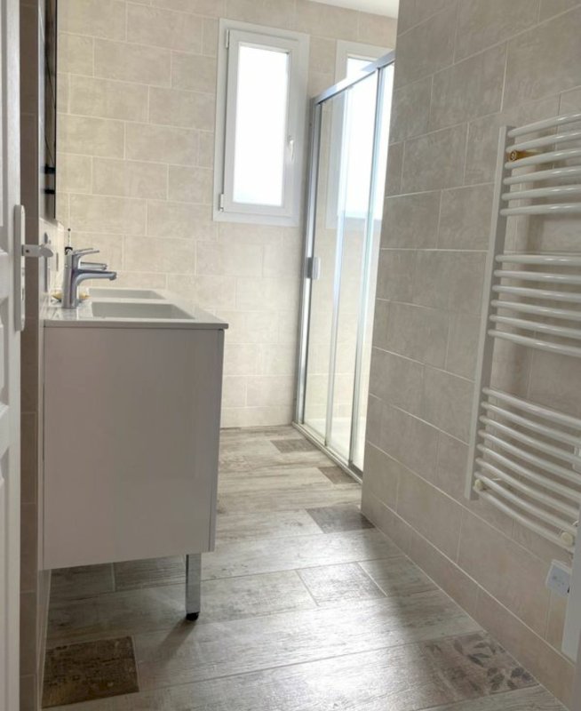 A l'étage , vous bénéficiez d'une salle d'eau refaite à neuf en 2020 (douche spacieuse, double vasques et toilettes) et de 3 chambres :
