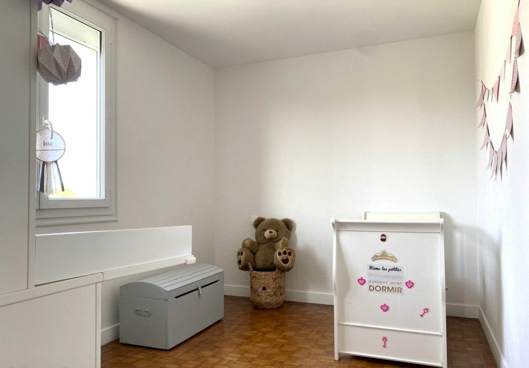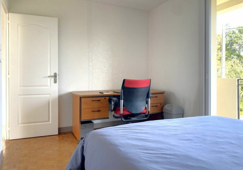 - Deuxième chambre : 12 m². Petite originalité : elle dispose de son balcon privatif.
