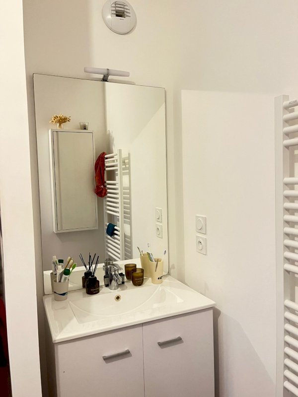 Au sein d’une résidence de 2021, l’appartement s’ouvre sur une belle entrée qui dessert une salle de bain avec douche et WC, équipée d’un chauffe-serviettes. La pièce de vie se compose d’un coin salon très lumineux, grâce à une grande porte-fenêtre qui donne sur un balcon de 8 m² exposé plein sud. Dans le prolongement, une cuisine aménagée avec de nombreux rangements et un plan de travail spacieux qui permet de s’attabler à quatre personnes. La chambre de 12 m² offre un espace dressing et un coin bureau, idéal pour le télétravail ou les études. La porte-fenêtre apporte une belle luminosité à la pièce, et s’ouvre sur un petit balcon.