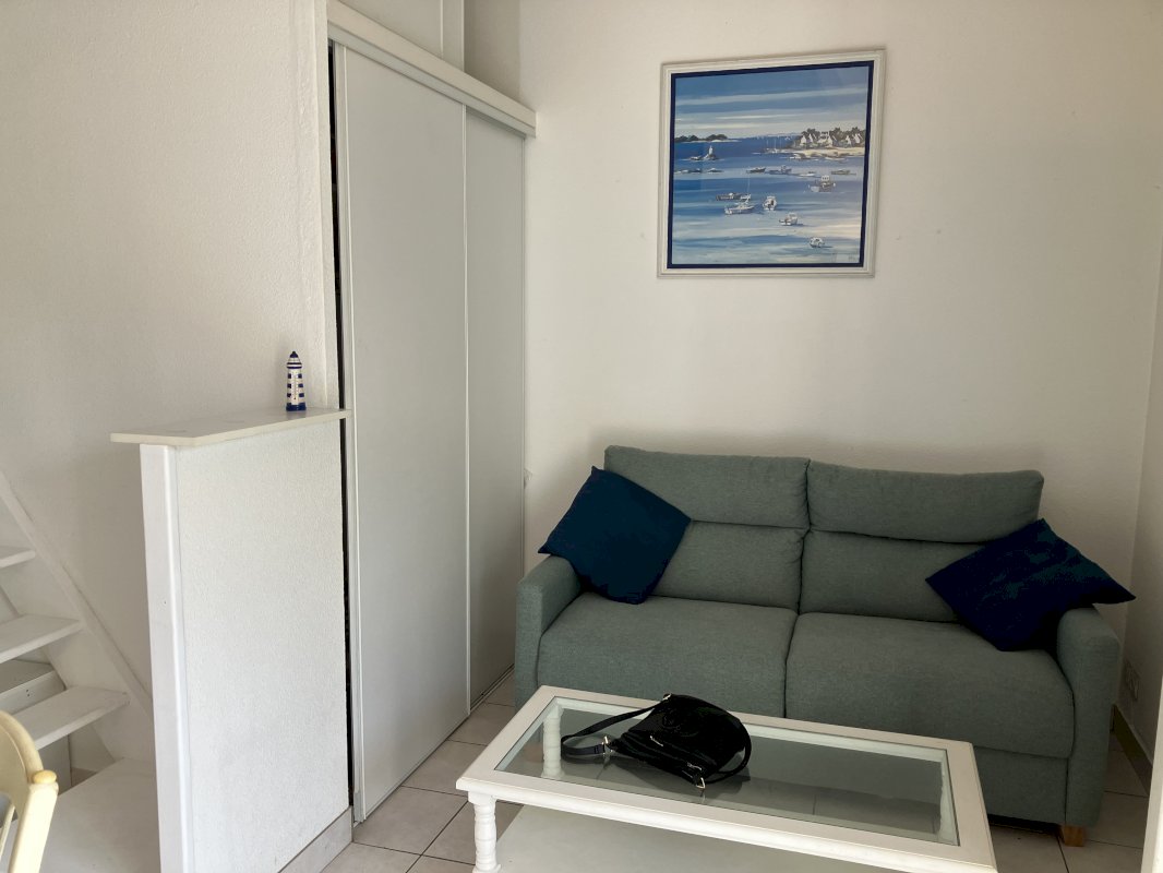 Elle comprend : un séjour cuisine et un espace canapé convertible 140 et grands placards
