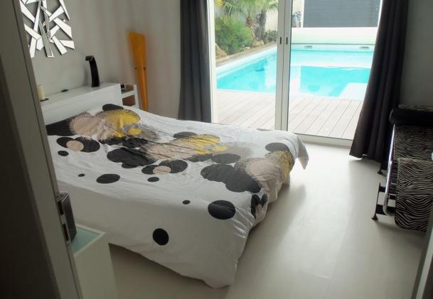 Piscine 8.5 x 4.3 m avec volant roulant électrique, pompe à chaleur. Cabanon pool house de 12 m².