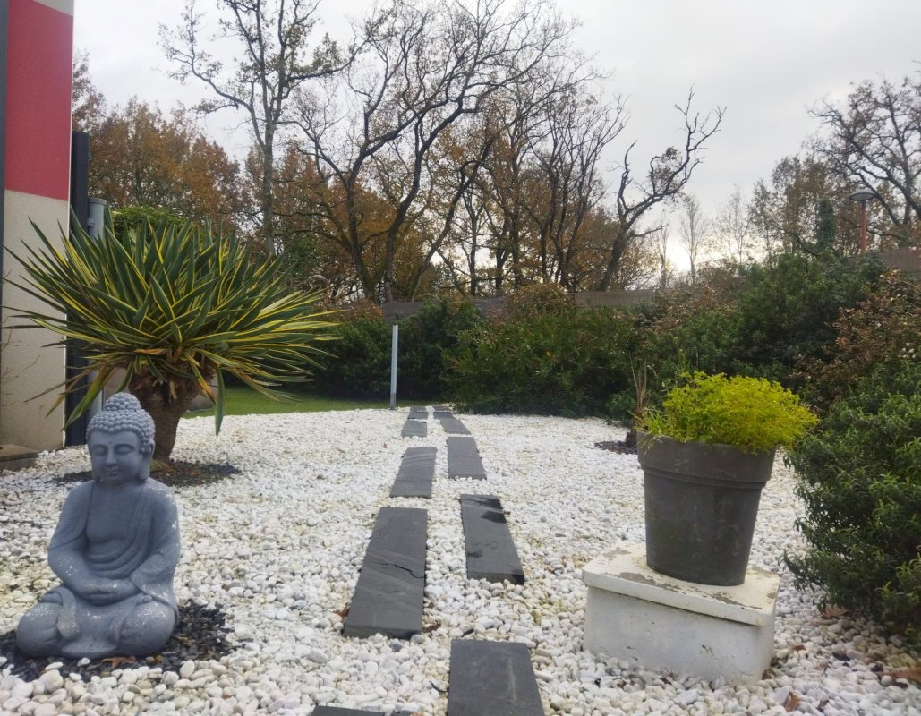 2 terrasses, des panneaux solaires, chauffage aérothermie avec pompe à chaleur, 2 places de parking et un jardin clos et arboré. Garantie décennale. TF : 1400 €