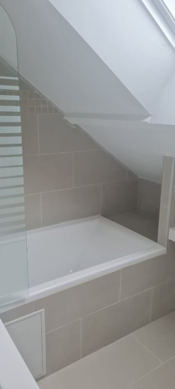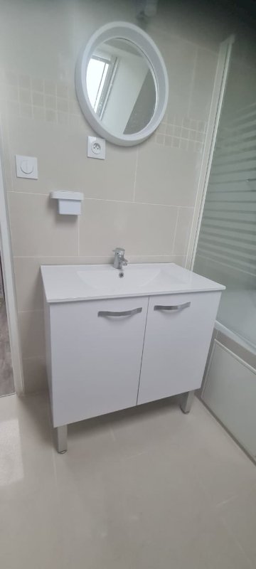 • Étage : 2 chambres, salle de bain faïencée (baignoire), couloir avec rangement.