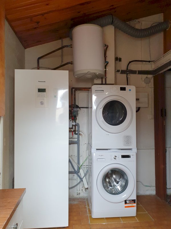 - une chaufferie avec pompe à chaleur, machine à laver et sèche-linge neufs,