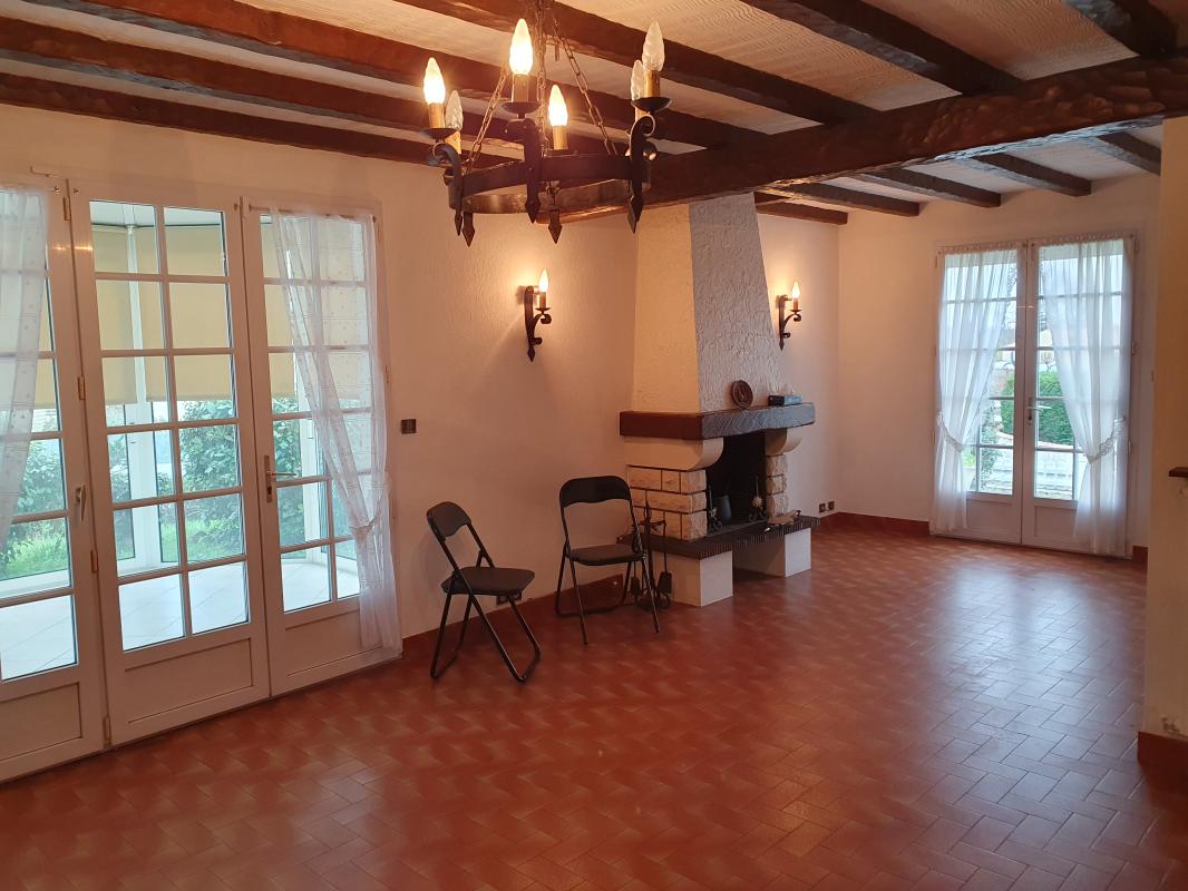 - une salle à manger et séjour avec cheminée (avec ustensiles) et véranda d'environ 18 m²,